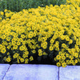 Alyssum 'Mountain Gold' blooms in late spring with bright yellow flowers on compact, spreading plants with silvery, evergreen foliage. H 5" W 8"