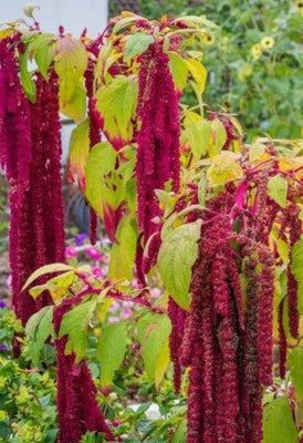 Long, slender (12") tassels/spikes of small, petal-less, red to gold drooping flowers. 37,500 seeds/oz. H 36-48"