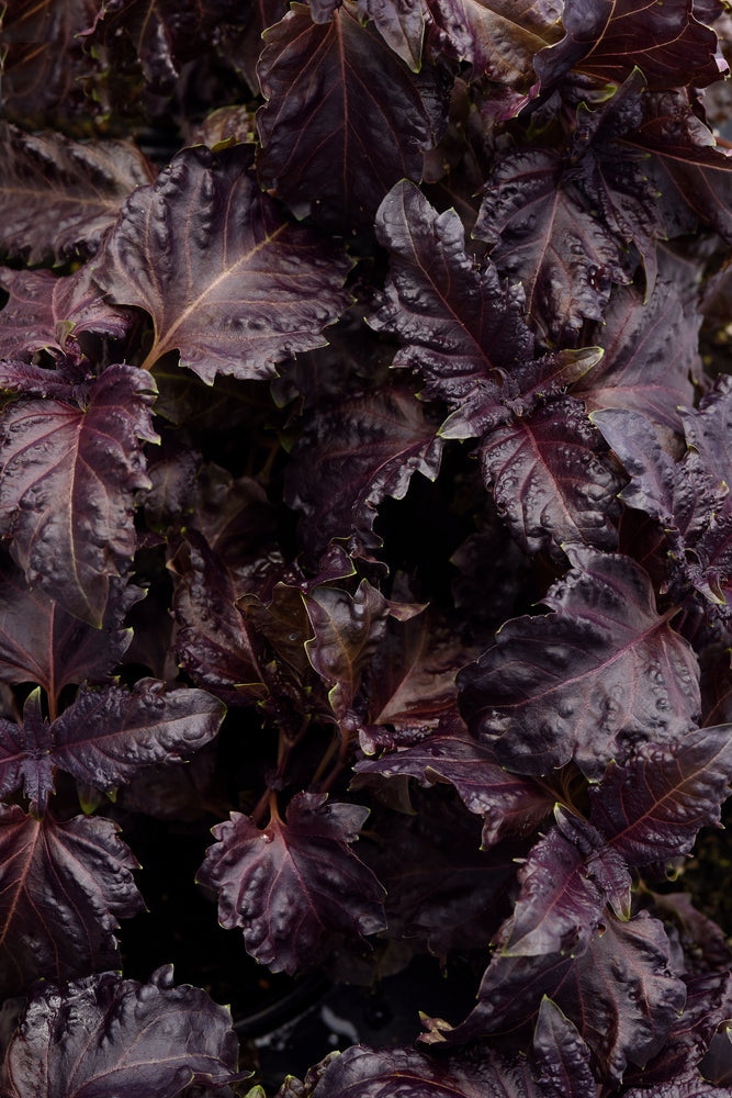 Ornamental variety has fragrant, ruffled, deep purple leaves with mild anise flavor. All-America Selections National Winner.