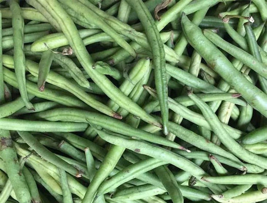 50-75 Days to maturity. Non-GMO, annual, open-pollinated, high-yielding, AAS Winner, drought and heat tolerant, pole, snap string bean. Resistant to Bean Common Mosaic Virus (race 1) and Rust. Kentucky Blue Pole Beans are a remarkable variety that combines the best traits of the classic 'Kentucky Wonder' and 'Blue Lake' pole beans. This hybridization results in a bean that is not only high-yielding but also offers exceptional flavor and tenderness. Yet, the plants are open-pollinated! The vines can reach impressive heights of 6 to 8' requiring sturdy support structures like trellises or poles. The beans are long, slender, and deep green, typically reaching 6 to 7". They are stringless and have a sweet, tender flavor, perfect for fresh eating, canning, or freezing. ~89 seeds/oz.