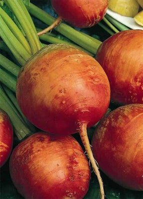 55-60 days. Golden Detroit has a sweet taste, and is full of nutrients. It is recommended that you harvest the beets when the roots are one to three inches, for best flavor. The stalks of this root vegetable remain dark green like other strains of beets, but the vein adorn a brighter red and orange shade. Produces deep orange and yellow beetroots. ~1,250 seeds/oz.