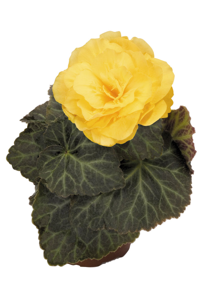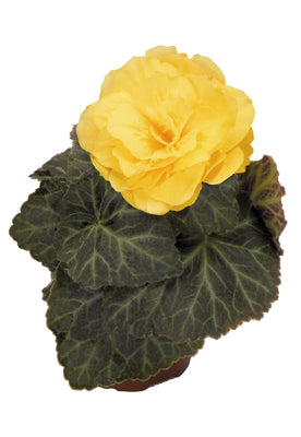 Early lateral branching for premium quality production. Uniform in vigor, habit and flowering. Large, fully double flowers up to 4” . A full color range including bicolors. Nonstop Moccas are the only dark leaved tuberous begnia series on the market.H 10” W 9”