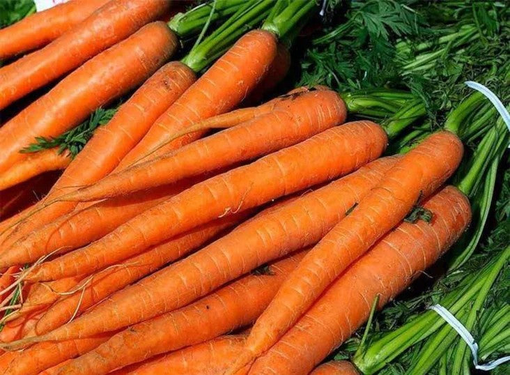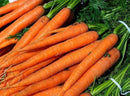65-80 days. 9" long tapered roots with a bright orange color. Their tops are green and fluffy, growing up to eight inches tall. Common supermarket variety.