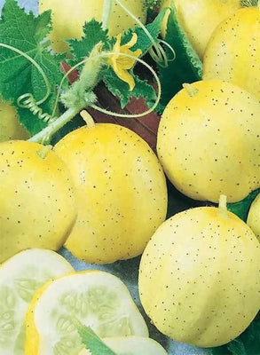 65 Days. Open-pollinated, heirloom, monoecious, slicing or pickling cucumber. Resistant to rust. Lemon cucumbers are crunchy, have non-bitter skin, and are about the size of a 3" lemon. H 18-30"