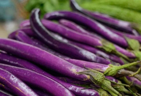 Plants are disease resistant and do well even in heat. Fruits produced are 12-18" long and 1.25" wide. They are various shades of purple.