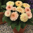 A fun and colorful series. Earliest, semi-double flowered Gerbera on the market. Large and unique flowers combined with great vigor ideal for large premium pots. Superior shelf life compared to competitors, with reduced leaf stretch and yellowing. H 15-18"