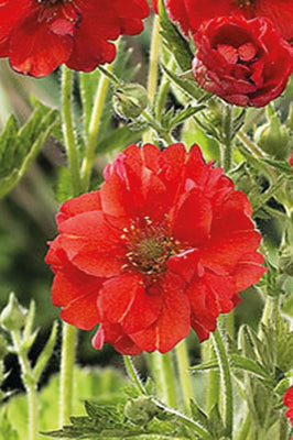 Scarlet, semi-double flowers; green, heart-shaped foliage. Mounded habit. Good in gardens, mixed containers. H 24" W 18"