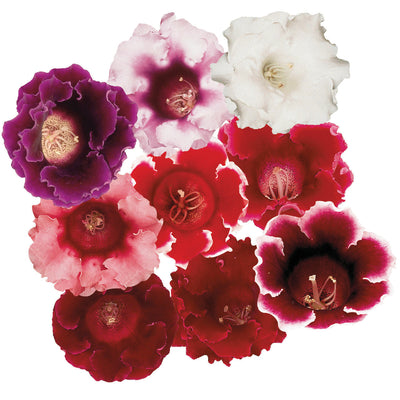 Avanti F1 hybrid gloxinia is the earliest single-flowering series on the market. Avanti is bred for high-density production and successful shipping with its flowers held just above the foliage of small supple leaves on short strong stems. Gloxinia Avanti is recommended for 4-5” pot production. H 6-8” W 8-10”
