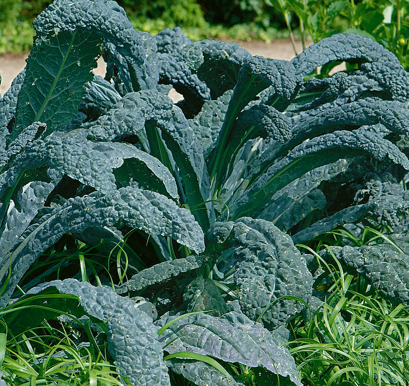 Known by several names including Dinosaur kale and Tuscan kale, Lacinato seeds grow one of the most prolific, commercially cultivated kale varieties ever. Lacinato kale is a dark bluish-green heirloom with a uniquely textured embossed leaf that definitely looks prehistoric. H 12-18"