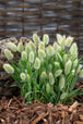 Silvery green foliage; matures to silvery gray. Distinctive “puffs” like small rabbit tails appear in early Summer and can be left for Winter interest. Uniform shape. H 8-12" W 12"