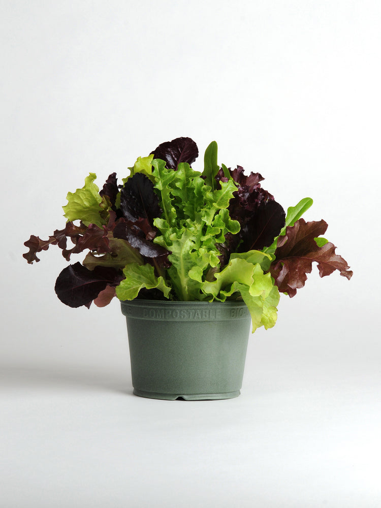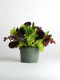 Red and green leaf lettuces with arugula, endive and radicchio. Supplied as multi-species multi-pellets, with 3 or more seedlings per pellet. H 12" W 12"