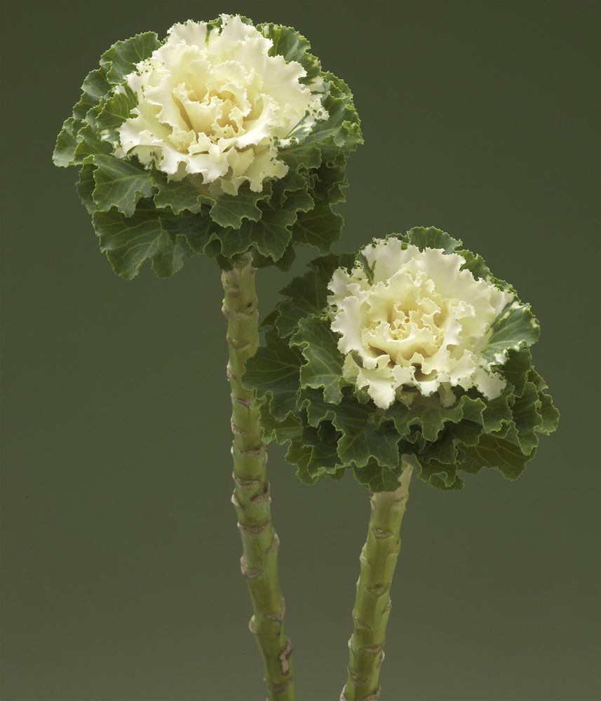 The Crane series is a cut-flower type Flowering Kale. Extremely long lasting in arrangements and bouquets, Crane makes a stunning visual statement due to its beautiful form. Crane Ruffle’s leaves have elegantly ruffled edges and its vigorous plant habit making it easy to achieve plant height. Bicolor is slightly shorter than the other 3 colors in the series. Crane Feather is the first uniform feather-leaf Flowering Kale. Its texture brings a contemporary flair to arrangements and bouquets. Crane Stem length is 24 – 35″ Crane is very uniform in height and head size. Feather Crane Stem length is 20 – 36″ Ruffled Crane stem length is 25 -36”