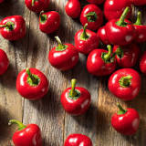 Bright Red 2-2 1/2" round fruit on tall, F1 hybrid plants. 2500-5000 Scoville Units so not too hot but lots of flavor.