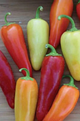 Open-pollinated, heirloom, high yielding, deer resistant, heat tolerant, drought tolerant, hot-type pepper with mild heat levels. 500 to 700 Scoville Heat Units. Resistant to Tobacco Mosaic Virus. Peppers mature from yellow to shades of orange and red.