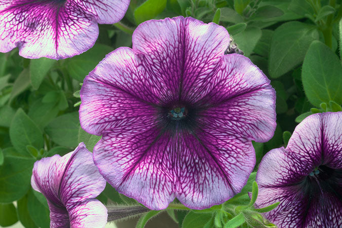 Trilogy is a hybrid Petunia bred to help the grower, retailer and consumer. It requires less growth regulators, lasts longer on the retailer shelf display and performs in the garden with minimal care. A multiflora Petunia with a novel dome habit, it flowers prolifically on compact spreading plants. Uniformity across all colors, a controlled habit for less tangling, and less day length sensitivity than other spreading Petunias. H 10-12" W 24-30"