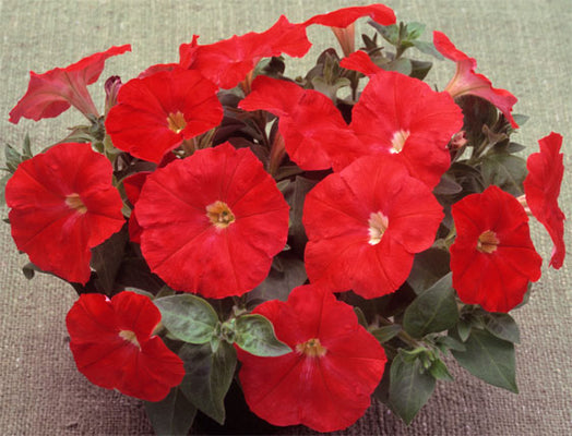 Trilogy is a hybrid Petunia bred to help the grower, retailer and consumer. It requires less growth regulators, lasts longer on the retailer shelf display and performs in the garden with minimal care. A multiflora Petunia with a novel dome habit, it flowers prolifically on compact spreading plants. Uniformity across all colors, a controlled habit for less tangling, and less day length sensitivity than other spreading Petunias. H 10-12" W 24-30"