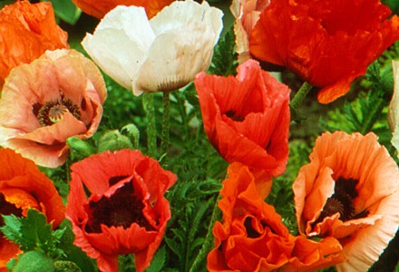 Large single flowers. Mix of bright colors with black spotted centers. H 20" W 20"