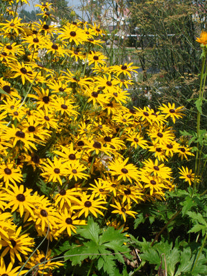 Superior seed quality compared to other Goldsturm strains. Premium, late Summer-flowering perennial is considered “best in class” for landscapes. Upright plants produce a large, single, scentless bloom on every stem, over tight, dark green foliage. Goldsturm needs early sowing and optimal natural growing conditions to provide 100% First Year Flowering. H 24-28” W 14-18”