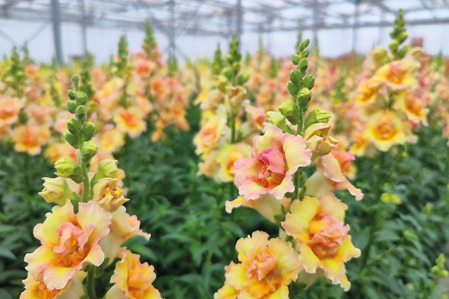 DoubleShot™ is a new series of tall garden F1 snapdragons with beautiful open-faced double flowers on strong, heavily branched plants. They produce wind-resistant, sturdy flower stems, even during short-day times of year. Growing to a height of 20-24”, DoubleShot™ is ideal as tall garden accents in flower beds or in containers, but can also be used as a long-lasting home cut flower.