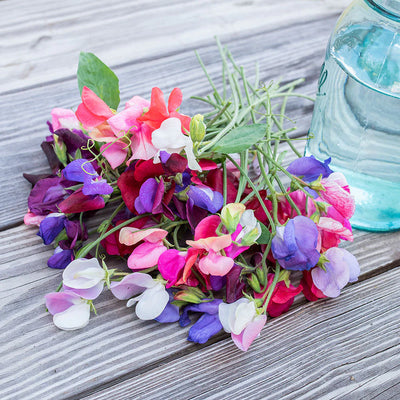Old Spice Mix is a climbing blend that should be trellised. It boasts colors in shades of white, cream, pink, rose, scarlet, and purple. The best sweet pea for warmer climates.