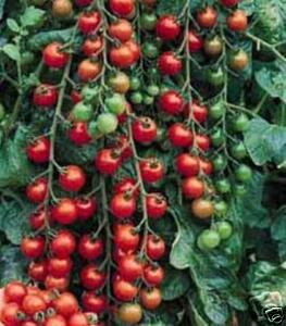 Indeterminate, open pollinated plants with small 1/2" fruits. Heavy yields, sweet flavor.