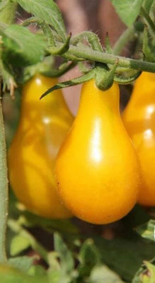 Open-pollinated, heirloom, heat tolerant, indeterminate, cherry tomato. Suitable for growing in garden plots, raised beds, and greenhouses. Resistant to disorders. Small, pear-shaped tomatoes. H 36-96"