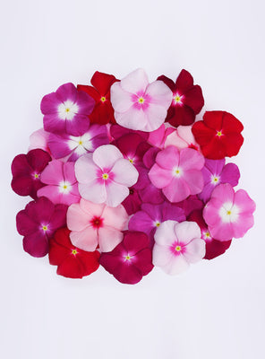 Vinca Mega Bloom is the largest flowered Vinca F1 from seed. Mega Bloom was bred to withstand heat and humidity with disease resistance. Showy flowers on vigorous plants stay tidy and compact. Growers will appreciate the early blooming time, compactness, and plant uniformity. H 8-10" w 10-12"