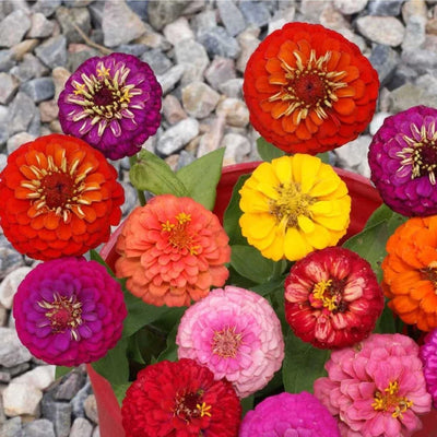 A semi-dwarf variety in shades of pink, purple, red, orange, white and yellow. The pom-pom shaped flowers are fully double and about 1.5" across. Lilliput Mixture Zinnia seeds are tenacious against many mildews, diseases, and pests and are widely known to be a deer repellant. Approx. 3,900 Seeds/oz.
